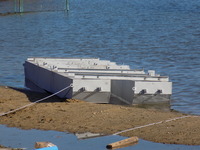Это современный причал, из модульных стальных понтонов.